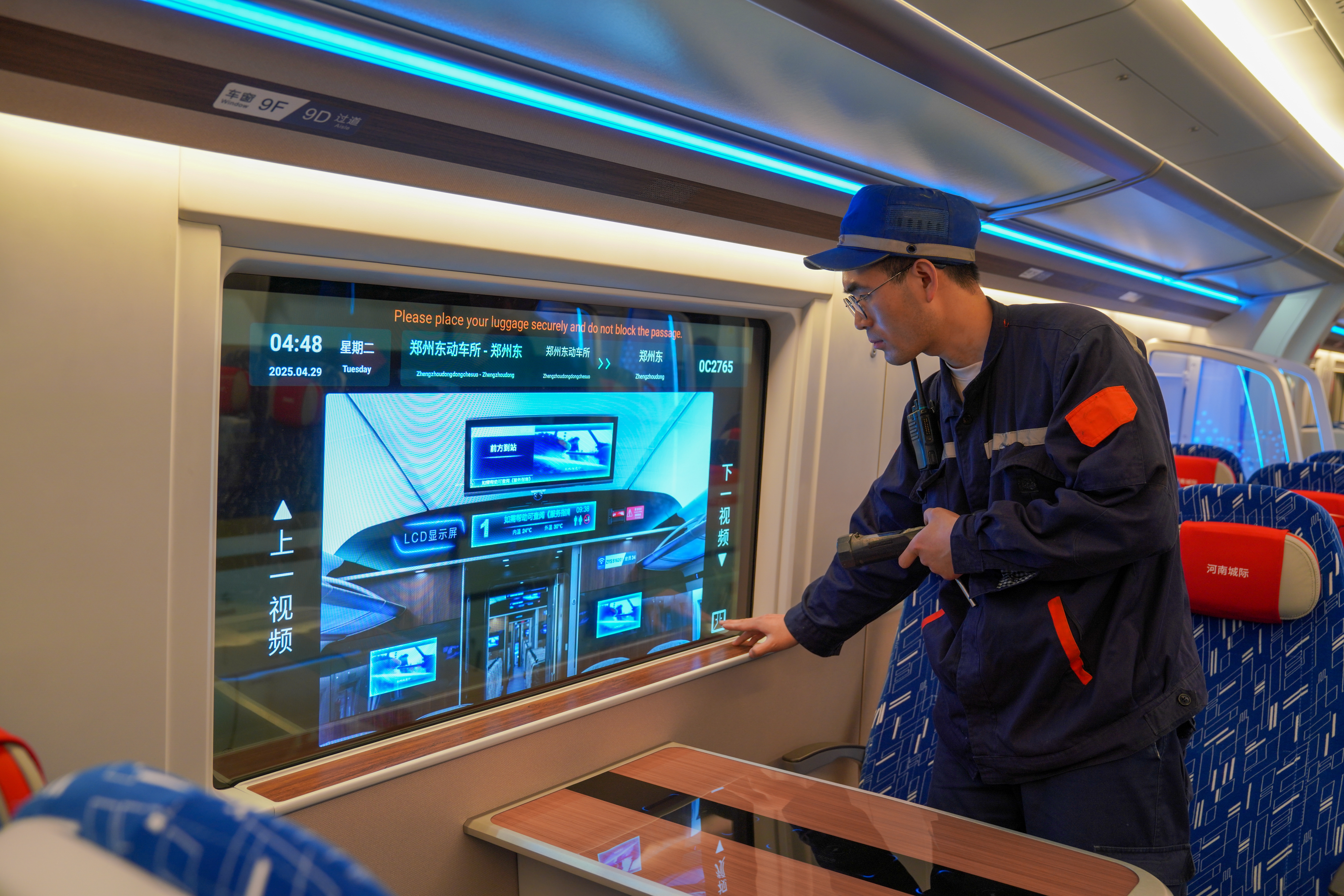 “旅客可以根据需求选择观看视频,也可以点击‘车窗切换’按钮控制车窗进光模式,欣赏窗外风景,沉浸式享受人机交互模式,增加旅途的趣味性。”他说。